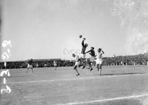 Fase do jogo entre o Lusitano e o Belenenses, no Campo Estrela, e cujo resultado foi Lusitano 0 - Belenenses 1.
